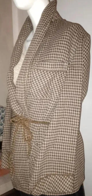 Elegante giacca sartoriale in lana con un classico motivo pied de poule. Un capo versatile e raffinato. - Tessuto in lana di alta qualità. - Design sartoriale curato nei dettagli. - Motivo pied de poule intramontabile.