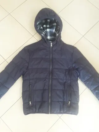 Giubbino con cappuccio per ragazzo double face Sarabanda. - Chiusura con zip. - Tasche con zip laterali. Taglia 16A / 170.