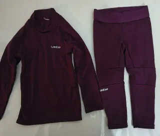 Tuta termica per bambini Wed'ze, ideale per le giornate più fredde. - Set composto da maglia a maniche lunghe e pantaloni. - Colore bordeaux. - Logo Wed'ze stampato sul davanti della maglia e sul pantalone. -Ginocchia e schiena rinforzata.