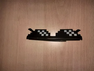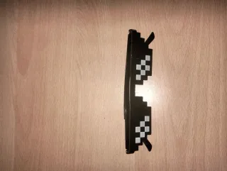 Occhiali da sole con un design unico a pixel. - Montatura nera. - Lenti con motivo a scacchiera bianca e nera.
