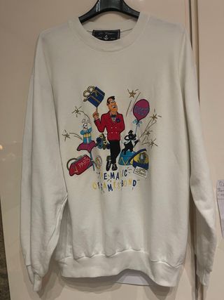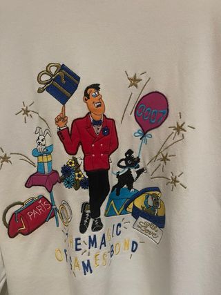 Felpa girocollo Les Copains con stampa grafica. - Composizione: 90% cotone, 10% viscosa. - Stampa a tema The Magic of James Bond con personaggi dei cartoni animati e dettagli ricamati. - Girocollo a costine. - Polsini e fondo a costine.