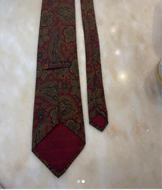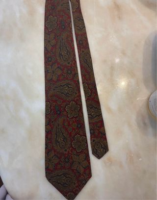 Elegante cravatta in seta con fantasia paisley. - Materiale: 100% Seta - Fantasia: Paisley - Colore: Rosso e marrone