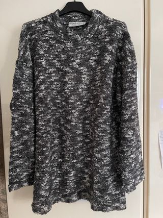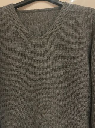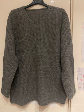 Elegante maglione con lavorazione a trecce. - Composizione: 60% lana, 20% angora. - Colore: grigio. - Taglia: M.