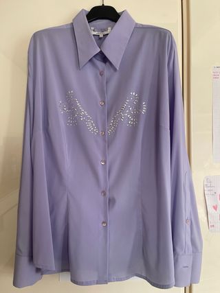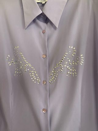 Camicia da donna con un elegante design. - Colore lilla - Decorazione con strass sul davanti - Maniche lunghe con polsini - Chiusura con bottoni