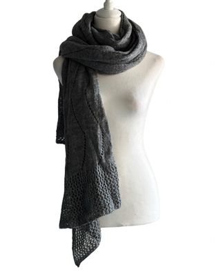 Sciarpa in maglia grigia, perfetta per l'inverno. Presenta un motivo traforato che aggiunge un tocco di stile. - Design con lavorazione a maglia. - Motivo a traforo lungo i bordi.