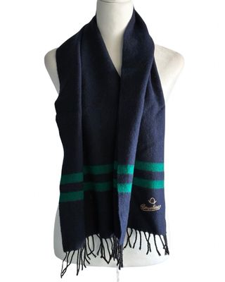 Sciarpa Borsalino con un design a righe. - Colore principale blu scuro. - Dettagli a righe verdi. - Lunghezza ideale per diverse opzioni di styling. - Orlo con frange.