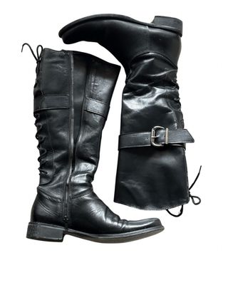 Eleganti stivali in ecopelle, perfetti per completare ogni outfit. - Dettaglio con lacci sul retro. - Fibbia decorativa. - Zip laterale per una facile calzata.
