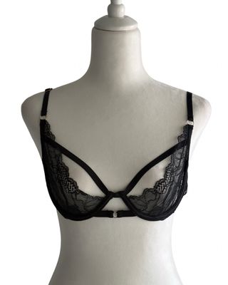 Reggiseno Yamamay in pizzo nero, modello con coppe a balconcino. - Dettagli in pizzo floreale. - Spalline regolabili. - Chiusura posteriore con gancetti.