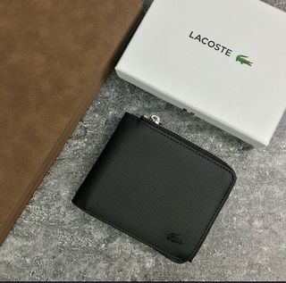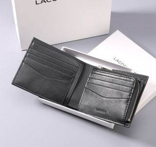 Portafoglio Lacoste nero con zip. - Logo Lacoste sul davanti. - Design testurizzato. - Porta carte di credito - Porta documenti