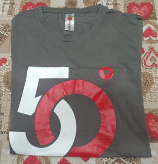 Maglietta grigia con una stampa sul davanti. - Stampa 50° in bianco e rosso. - Girocollo.