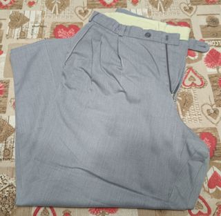 Pantaloni eleganti in tessuto grigio. - Chiusura con zip e bottone. - Tasche laterali. - Vita con passanti per cintura.