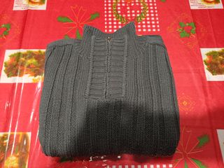 Maglione in lana con collo alto e zip. - Tessuto a trecce. - Collo a costine. - Zip frontale.