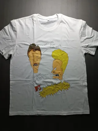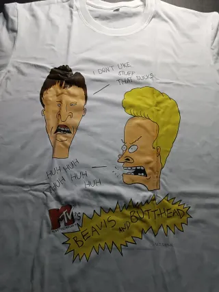 Maglietta con stampa dei personaggi Beavis and Butt-head. - Grafica I don't like stuff that sucks. - Logo MTV. - Stampa Beavis and Butt-head. -Nuova mai utilizzata, confezione aperta solo per fare le foto. - Taglia L per sicurezza verificare le misure: Spalle 47 cm Lunghezza 68 cm.