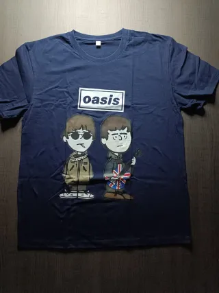 T-shirt blu con stampa ispirata ai Peanuts e logo Oasis. - Stampa raffigurante due personaggi in stile Peanuts. - Logo Oasis in un riquadro bianco. -Taglia L, per sicurezza verificare le misure: Spalle 46 cm Lunghezza 67 cm -Nuova mai utilizzata confezione aperta solo per fare le foto