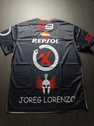 Maglia sportiva con design ispirato a Jorge Lorenzo. - Numero #99 e nome Jorge Lorenzo stampati. - Design a blocchi di colore arancione, bianco e grigio. - Dettagli grafici sulle maniche e sul petto. -Taglia L per sicurezza verificare le misure Spalle 48 Lunghezza 71 -Nuova mai utilizzata confezione aperta solo per fare le foto