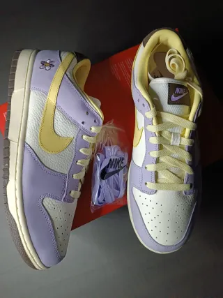 Scarpe Nike Dunk con una combinazione di colori viola e bianco. - Design low-top. - Lacci chiari. - Logo Nike sulla linguetta. -Taglia uomo 44