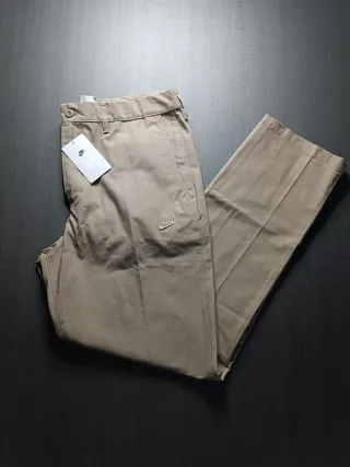 Pantaloni eleganti Nike in un colore beige versatile. - Logo Nike discreto ricamato. - Tasche anteriori. - Chiusura con bottone e zip. - Vestibilità regular -Taglia 34x32 corrispondente ad una L/XL per sicurezza verificare le misure: Vita 47 cm Lunghezza 110 cm