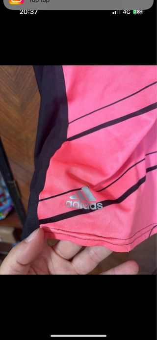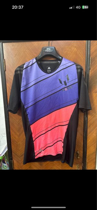 Completo sportivo Adidas Messi con un design a righe sfumate. - Maniche corte. - Collo rotondo.