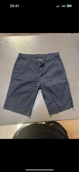 Pantaloncini comodi e versatili. - Tessuto resistente. - Dettagli con cuciture a contrasto. - Tasche laterali. - Chiusura con zip e bottone.