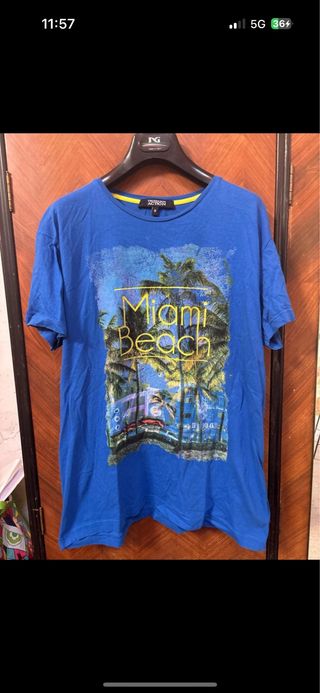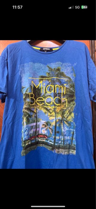 T-shirt Trussardi con stampa Miami Beach e palme. - Stampa grafica fronte. - Girocollo. - Maniche corte.