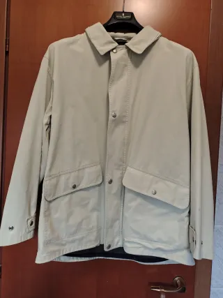 Giubbotto da uomo in colore beige. - Chiusura con bottoni e zip - Due tasche frontali con patta. - Collo a camicia.