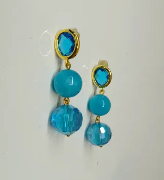 Orecchini con cabochon a lobo in ottone anallergico placcato oro 18k con pietra sfaccettata in cristallo color azzurro, pietra liscia in apatite color azzurro, pietra pendente multisfaccettata in cristallo color azzurro semispecchiato. Molto belli. #pietresemipreziose #preciousstones #nickelfree #artigianato #handmade #fattoamano #orecchini #earrings #bigiotteria #jewels #fashionjewelry #modaditendenza #modatendencia #trendylook #idearegalo #giftidea #cristallo #crystal #apatite