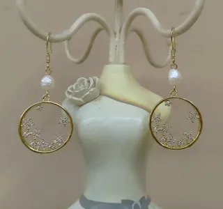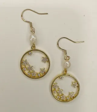 Orecchini con monachella aperta in argento 925 color oro, perla di fiume color bianco, cerchio pendente in metallo lavorato color oro con zirconi color bianco incastonati sui fiori. Semplici ed eleganti. #pietresemipreziose #preciousstones #nickelfree #artigianato #handmade #fattoamano #orecchini #earrings #bigiotteria #jewels #fashionjewelry #modaditendenza #modatendencia #trendylook #idearegalo #giftidea #perladifiume #riverpearl # zirconi #zircons