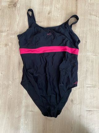 Set di abbigliamento per futura mamma con vari capi. - Un costume da bagno nero con dettagli rosa (taglia L) - Un bikini a righe rosse e blu navy (taglia L) - Un paio di shorts neri per la maternità (taglia M) - Un paio di shorts blu navy per la maternità (taglia L)