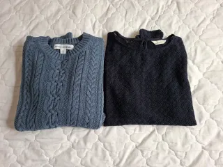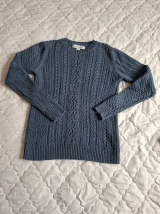 Set di due capi: maglione invernale e blusa in pizzo morbido al tatto per donna. - Maglione invernale in maglia spessa con trecce color blu. -Taglia M. -Marca Amazon essentials -Blusa in pizzo blu marino, scollo molto senza tempo, morbido e piacevole al tatto. -Taglia M. -Marca Springfield. SPEDIZIONE SOLO. NON CONSEGNA IN NEGOZIO. FACCIAMO LOTTI SUI NOSTRI ARTICOLI.