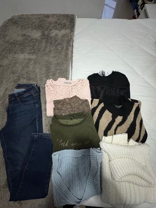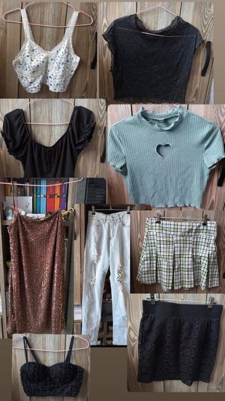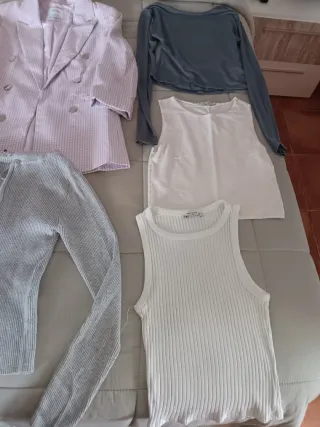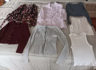 Lote de 35 artículos de ropa para mujer. - Variedad de prendas y estilos. - Entre tallas S y M - Realizó entrega sólo en el metro Urgel L5 y pago por Bizum. - Tallas del calzado 38
