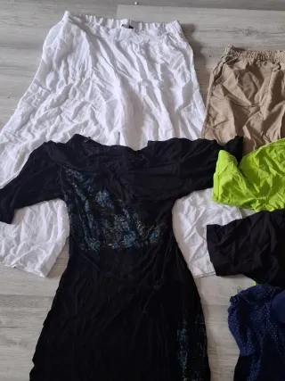 Consegna di abbigliamento femminile in perfetto stato. 9 capi a soli 25€, sono magliette e 2 vestiti estivi, taglia XL 44, sono larghi. Varietà di stili e design. Tessuti comodi e leggeri. Ideale per tutti i giorni.