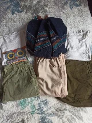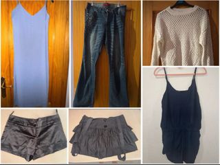 6 capi in buone condizioni, alcuni indossati solo una volta. 1 vestito, 1 jeans, 1 maglione traforato, 2 pantaloncini, 1 jumpsuit estiva.