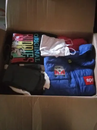 Box al kilo di vestiti firmati grado A. La foto è indicativa, non per forza c'è un prodotto in foto. Nella box ci sono solo i seguenti marchi: nike, ralph lauren, levis, adidas, dickies, tommy hilfige, carrera, la martina. Non ci saranno altri marchi oltre a quelli elencati. 20€ al kilo. Già sono state vendute oltre 20 box e le recensioni sono tutte sul profilo . Spedizione rapida e imballaggio ottimo.