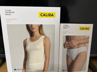 Confezione di biancheria intima Calida Daywear Basic. Include canottiera e slip. Realizzato in tessuto di lana e seta.