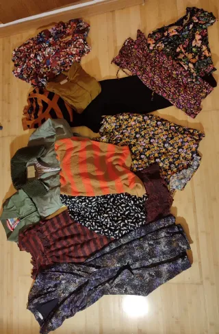 Consegna di 5 a 10 capi di abbigliamento casual. TUTTO IN PERFETTE CONDIZIONI - Include jeans, camicie, top, vestiti o maglioni. MARCHI COME: Zara, Stradivarius, mango o local (shein, ecc.) 5 capi=10€ 8 capi=16€ 10 o più=20€