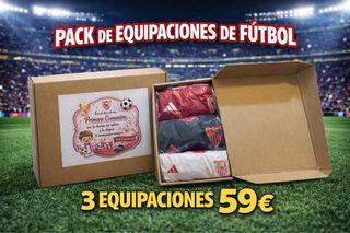 Confezione da 3 tenute da calcio. Ideale per il regalo della Prima Comunione. Include magliette da calcio.