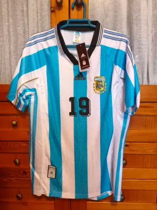 Maglietta da calcio con il numero 19 e il nome CRESPO. - Design a righe verticali. - Collo tondo.