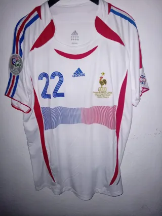 Maglietta retro calcio con il numero 22 e il nome Ribery. Design classico. Dettagli in blu e rosso.