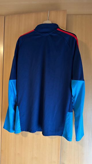 Giacca sportiva del marchio Adidas, con lo stemma del club Peña Sport Tafalla. Design con le iconiche tre strisce bianche sulle maniche. Chiusura con cerniera frontale. Collo alto.