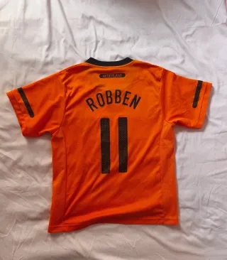 Maglietta da calcio dell'Olanda, con lo stemma della KNVB e il logo Nike. Design classico in arancione. Dettagli neri su collo e maniche. Numero 11 stampato sul davanti.
