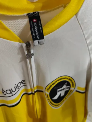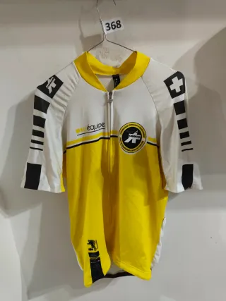 Maglia da ciclismo Assos con un design vivace e distintivo. - Maniche corte. - Zip frontale. - Dettagli grafici neri e gialli.