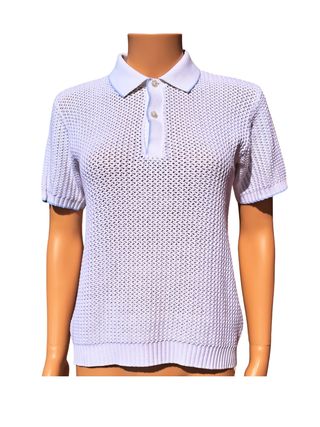 Polo in maglia traforata Fred Perry degli anni '60. Tessuto a rete aperta in bianco con dettagli a righe celesti su collo, tasca e polsini. Due bottoni. Pezzo originale, esclusivo e difficile da trovare. Perfetto stato. ⚠️ Manca il ramoscello sul petto. Polo da uomo. Taglia XS. 📐 Misure approssimative: Collo: 41 cm, Spalle: 39 cm, Petto: 47 cm, Lunghezza: 58 cm, Manica: 20 cm. 🫧 I colori possono variare leggermente rispetto alle foto a seconda del dispositivo o della luce. Controllo ogni dettaglio con attenzione, anche se può esserci qualche piccola imperfezione.