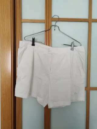Shorts da tennis del marchio Adidas in bianco. Design classico e comodo. Logo Adidas ricamato nella parte inferiore. Cintura con passanti per cintura. Chiusura con bottone e cerniera.