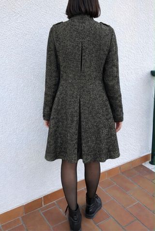 Abito da donna in lana un capo vintage degli anni 90', molto carino design particolare un vintage retro', con colletto in velluto, caldo, ben tenuto solo qualche piccola allargatura di tessuto avanti in alcuni punti, vedi foto più o meno li ho indicati anche se sono piccolissimi, lo indico per correttezza. La taglia è una 46 come da foto etichetta. Ottimo rapporto qualità prezzo - Maniche lunghe. - Collo in velluto a coste. - Taschino sul petto.
