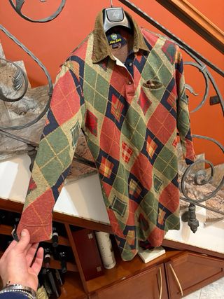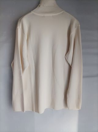 Splendido maglione a collo alto (dolcevita) firmato Collection L, color azzurro pastello/polvere. Il capo presenta una lavorazione a maglia compatta ed elegante, perfetta per la stagione invernale o per le fresche serate primaverili. Dettaglio raffinato: logo metallico del brand applicato sul fondo. Composizione: Mix di alta qualità 50% Cotone e 50% Acrilico, che garantisce morbidezza, calore e resistenza ai lavaggi senza perdere la forma. Taglia: Etichetta indica EUR 50 (corrisponde a una 56 Italiana / XXL). Ottima vestibilità anche per chi cerca un effetto leggermente over su taglie inferiori. S01-40