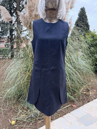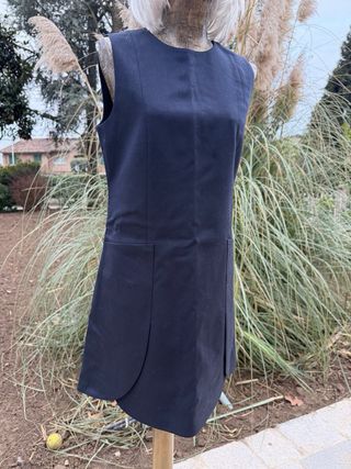 Scamiciato firmato Tory Burch, un capo versatile, chic e molto esclusivo in tessuto di lana che veste una TG. S. - Scollo rotondo. - Senza maniche. - Tasche applicate sul davanti. - Design a trapezio.