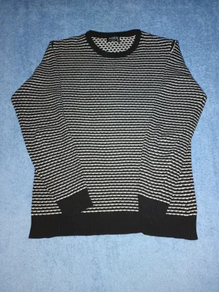 OFFERTA maglione Jersey Inside a righe orizzontali bianco e nero. Maniche lunghe e collo tondo. - Taglia M - Finitura in maglia piacevole al tatto. Regalo di 2 polo a maniche corte con design originali e accattivanti. Perfetto per un look casual, taglia M. Ottimo stato. Il nero è firmato Burton e il bianco Blend.