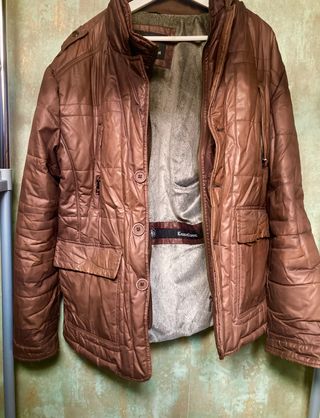 GIUBBOTTO KENNET STREET Giubbotto maschile marrone firmato Kennet Street. Impermeabile e termicamente confortevole con fodera interna in pile. Doppia chiusura frontale con bottoni e collo con cerniera. Due grandi tasche doppie nella parte inferiore e due tasche verticali sul petto con cerniera. Tasca interna con cerniera. Taglia XXXL, altezza con colletto 80 cm. Buono stato, poco usato.
