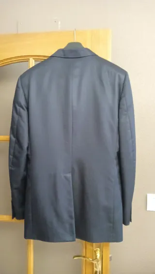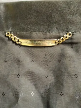 Elegante giubbotto firmato Dolce & Gabbana. Colore blu navy. Finitura satinata. Giubbotto taglia 46. Misure: larghezza spalle 44 cm, lunghezza da spalla a fondo 72 cm, lunghezza manica 63,5 cm, larghezza vita 46 cm. Buone condizioni e pulito. Pantaloni taglia 42. Misure (vedi foto dettaglio): lunghezza E 99 cm, vita A 42 cm, coscia D 30 cm, C 77 cm, larghezza polpaccio sotto B 20 cm. Regalo i pantaloni con il giubbotto, poiché il tessuto si è consumato nell'inguine e nei tasche per l'uso. Mio marito indossa pantaloni taglia 42 e gli stavano perfettamente. Tessuto molto comodo.