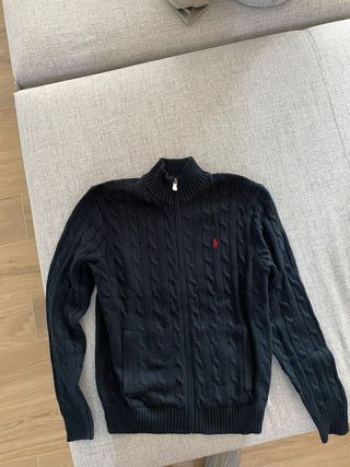 Maglione con zip da uomo firmato Polo Ralph Lauren. Un capo classico e versatile, perfetto per ogni occasione. - Design a trecce. - Logo rosso ricamato sul petto. - Chiusura con zip. - Collo alto a costine.